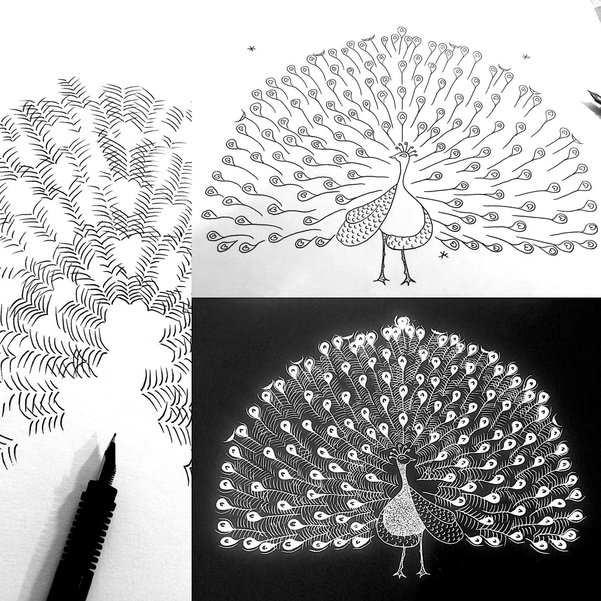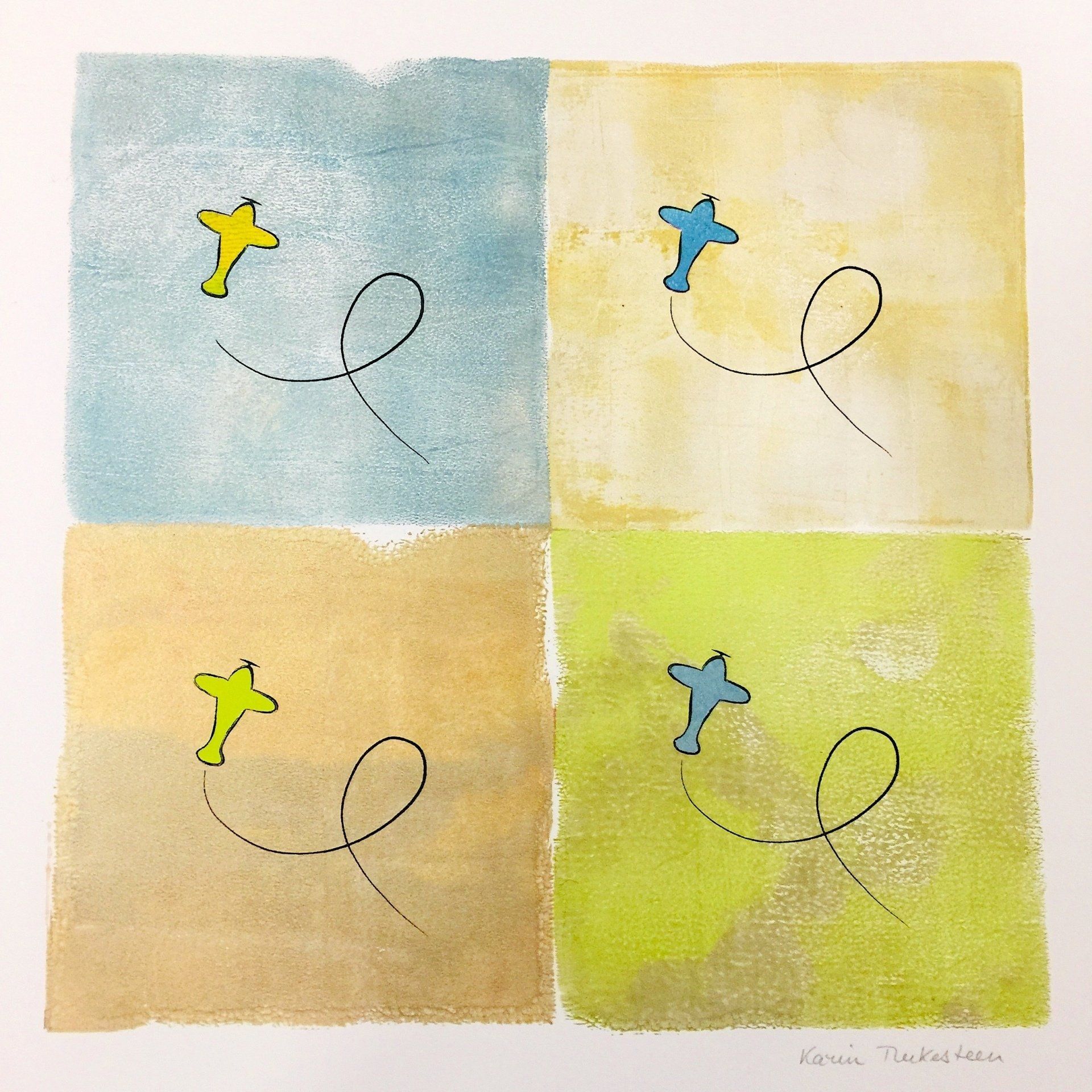 A cette technique, la liberté de l'artiste lui permet d'associer d'autres techniques comme les monotypes, le pochoir, le collage, la coloration à main levée.